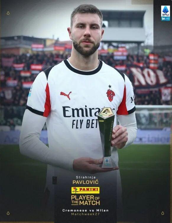 在本輪意甲,米蘭2-0擊敗克雷莫內(nèi)塞。本場比賽米蘭后衛(wèi)帕夫洛維奇在最后時(shí)刻打進(jìn)關(guān)鍵進(jìn)球,賽后他也當(dāng)選意甲官方評(píng)選出的本場比賽最佳球員。